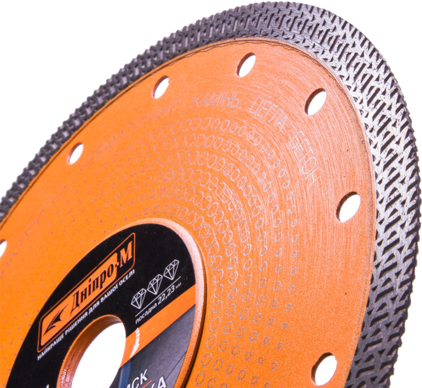 عجلة القطع الماسية عبارة عن قرص فولاذي بجزء قطع مغطى برقائق الماس وفتحات تمدد على طول مساحتها بالكامل. يلعبون دور الأسنان ، بفضل إزالة الحرارة وتقليل إجهاد التشوه. توجد الفتحات بشكل متماثل بشكل صارم ، مما يلغي اهتزاز القرص أثناء التشغيل. كما أن كتلة رقائق الماس متوازنة في اتجاهات متعاكسة تمامًا ، مما يضمن جودة عالية وقصًا موحدًا.