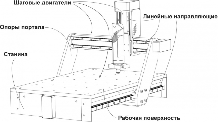 ملحوظة! في تلك التصميمات التي لا توجد بها وحدة تحكم ، يتم تنفيذ حركة طاولة العمل عن طريق أدلة موضوعة على سرير الأداة.