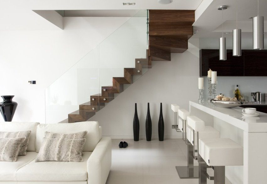 هناك خيارات كافية لبناء مثل هذه السلالم. لا يقتصر تصميمها على أي إطارات إضافية تقريبًا مقارنة بالسلالم التقليدية البينية. خذ سلمًا حلزونيًا. يمكنها التأكيد تمامًا على أسلوب الغرفة ومنحها مظهرًا باهظًا ومكلفًا. الأهم من ذلك ، أن هذا الهيكل يحتل مساحة صغيرة تمامًا ويمكن بناؤه حتى في منزل يعيش بالفعل دون المساومة على المساحة المفيدة ودون الحاجة إلى إعادة بناء جذري.