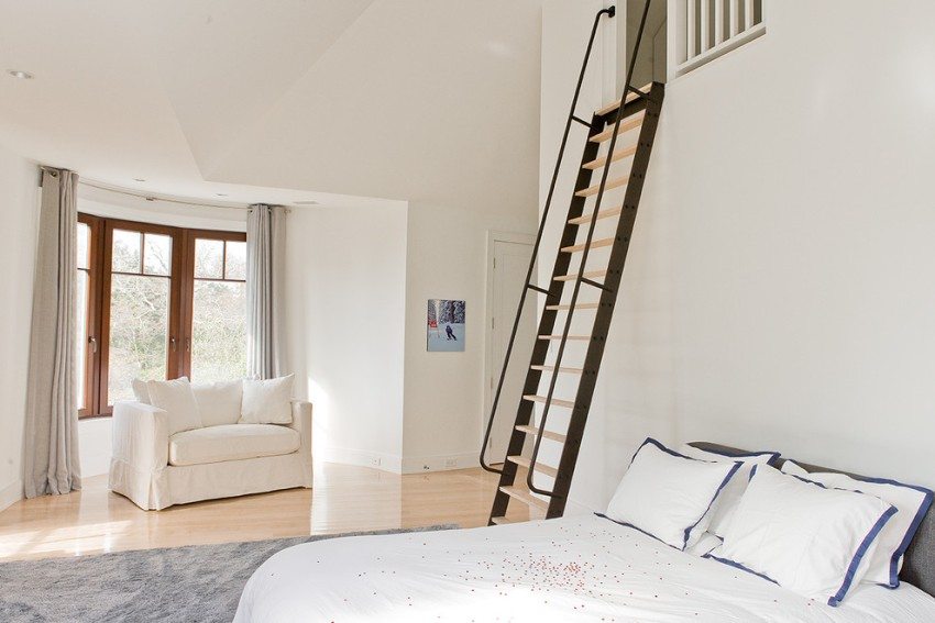 درج حلزوني في غرفة النوم