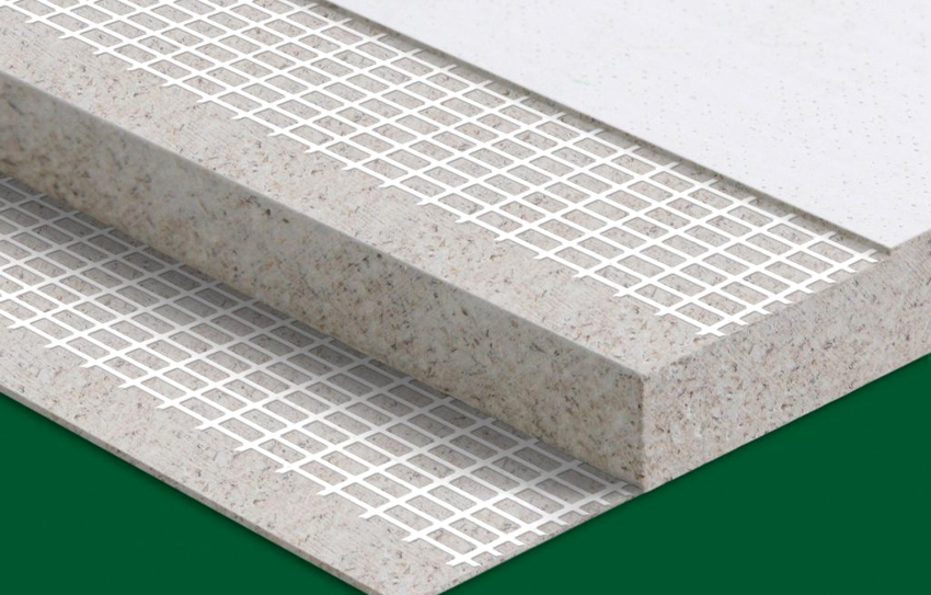 حقيقة! لزيادة مؤشرات مقاومة الرطوبة ومقاومة التشوه ، يتم استخدام معالجة خاصة.أثناء عملية الإنتاج ، يتم تشريب ألياف الجبس بمركبات خاصة من مادة اللاتكس. هذا لا يساعد فقط في زيادة خصائص مقاومة الماء ، ولكنه يضمن أيضًا الالتصاق الأمثل بمواد التشطيب الأخرى والطلاء.