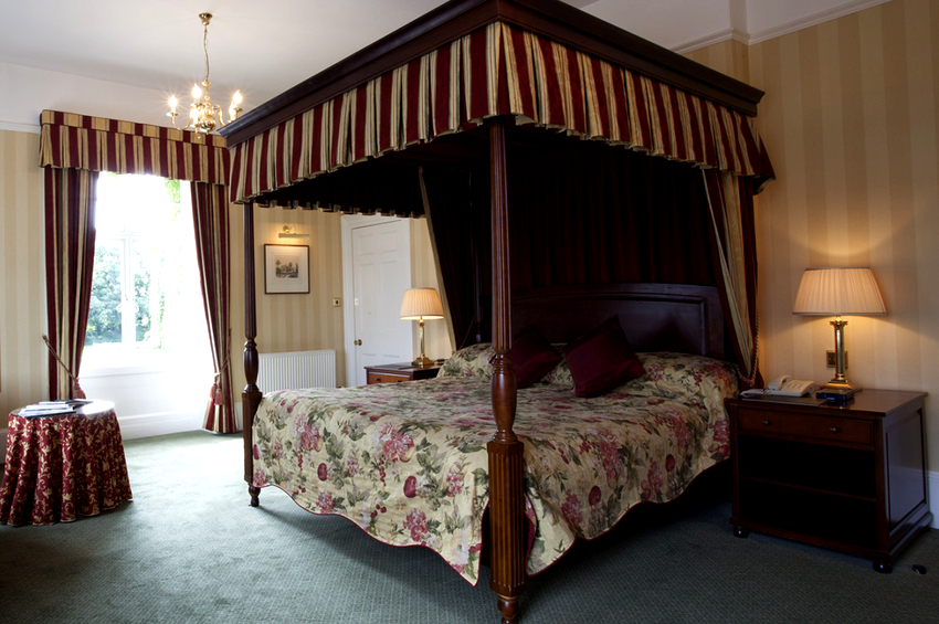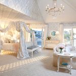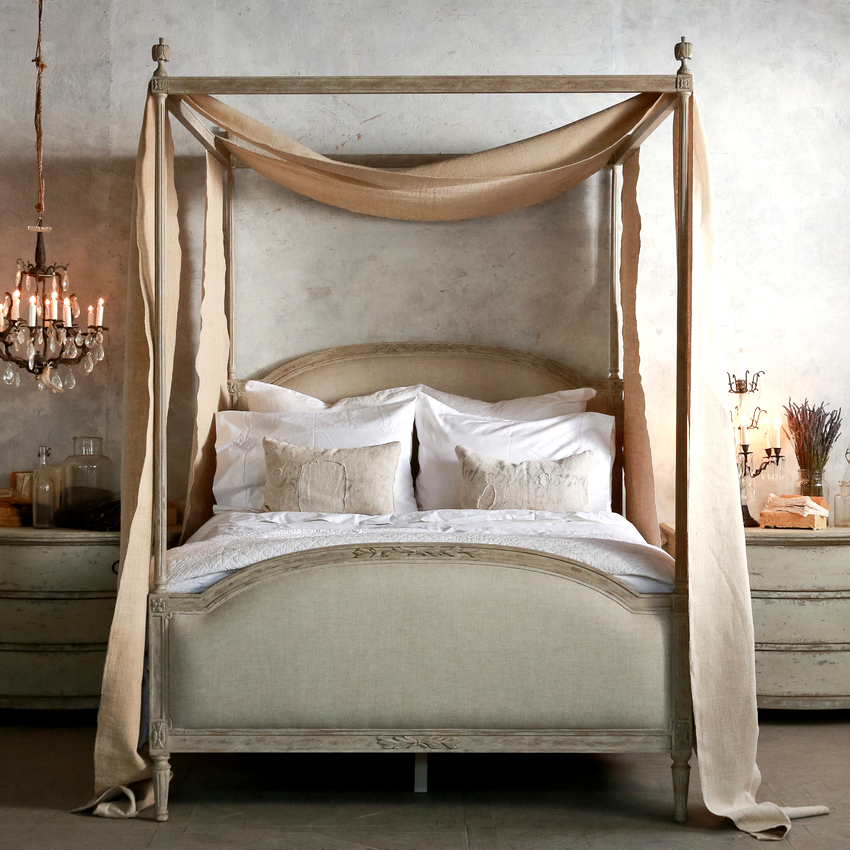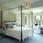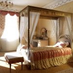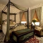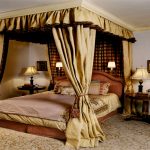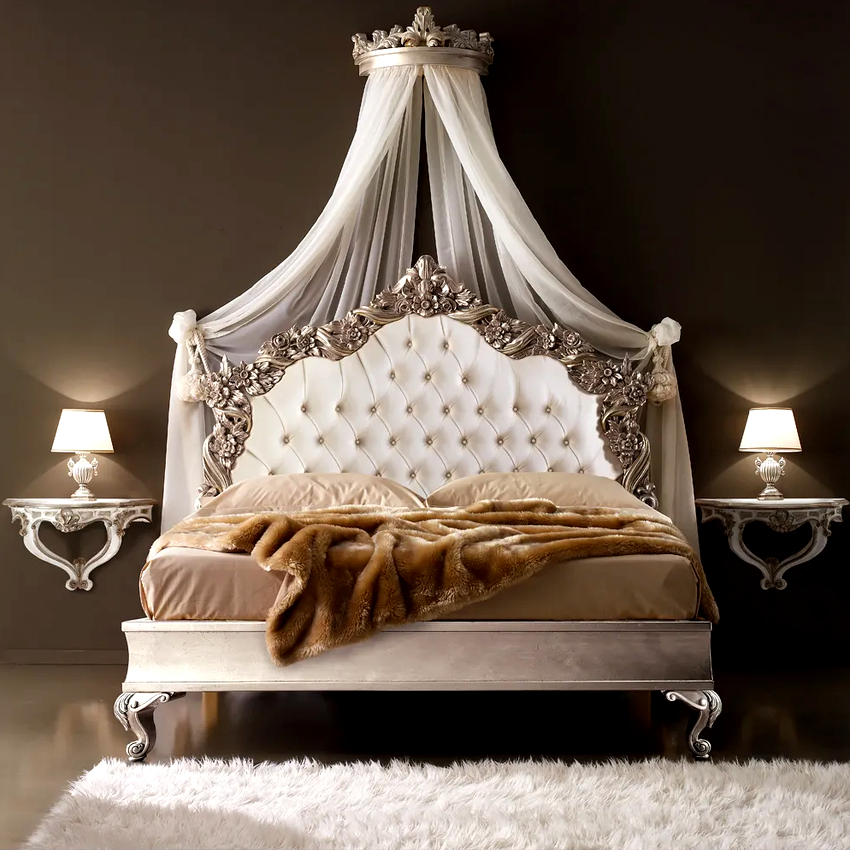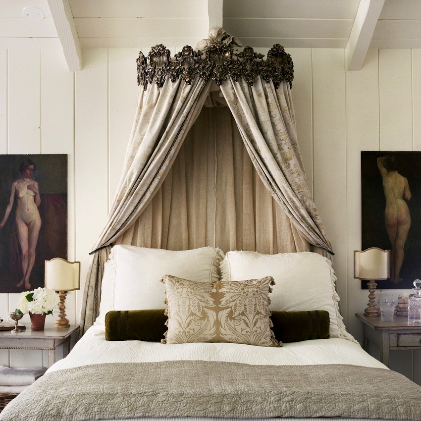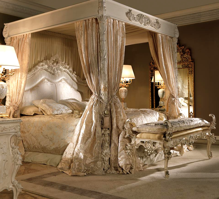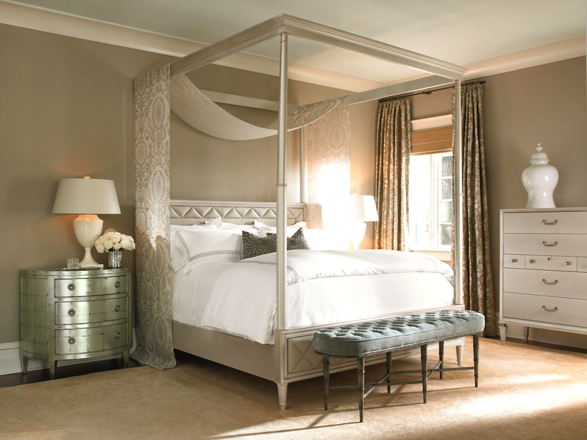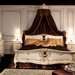 ليس من الضروري الإشارة إلى النمط الكلاسيكي أو الباروك في داخل الغرفة. تُستخدم المظلة لإبراز السرير مقابل الخلفية العامة ، لكن هذا الحل يجب ألا يضر بالبيئة العامة.