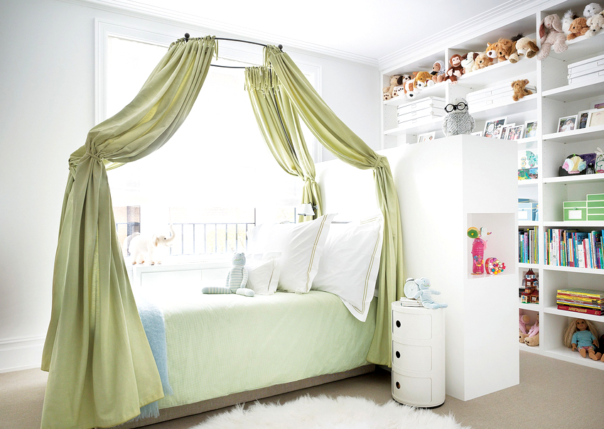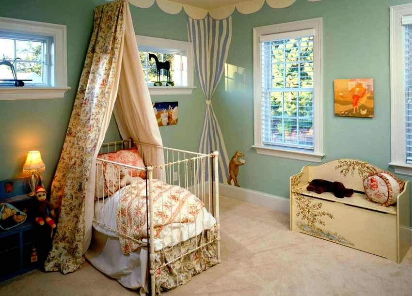 في غرفة الأطفال ، ستؤدي المظلة وظيفة زخرفية ووقائية.