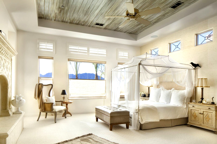 يجب التعامل مع اختيار طريقة التثبيت بجدية ودقة ، لأن ذلك سيؤثر لاحقًا على تصميم وأسلوب الغرفة. من المقبول عمومًا أن أسرة المظلة مناسبة حصريًا لغرف النوم الفسيحة ذات الأسقف العالية. ومع ذلك ، قد لا يكون هذا البيان صحيحًا دائمًا. كل هذا يتوقف على مدى جودة اختيار المظلة وطريقة تركيبها وكذلك على مادة التصنيع واللون.