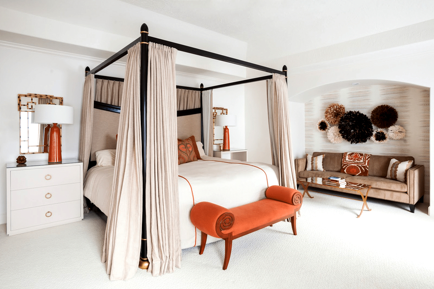 سرير مغطى بأربعة أعمدة: عنصر فاخر وجذاب داخل غرفة النوم