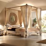 يمكن تركيب سرير دائري بأربعة أعمدة في غرفة النوم لخلق تصميم داخلي حديث. سيصبح الرأس الخفيف إطارًا جميلًا لمكان نوم غير عادي ، وأيضًا يخفيه عن أعين المتطفلين. يعد خيار التصميم هذا مثاليًا إذا كنت ترغب في تحقيق الخصوصية في غرفة النوم.