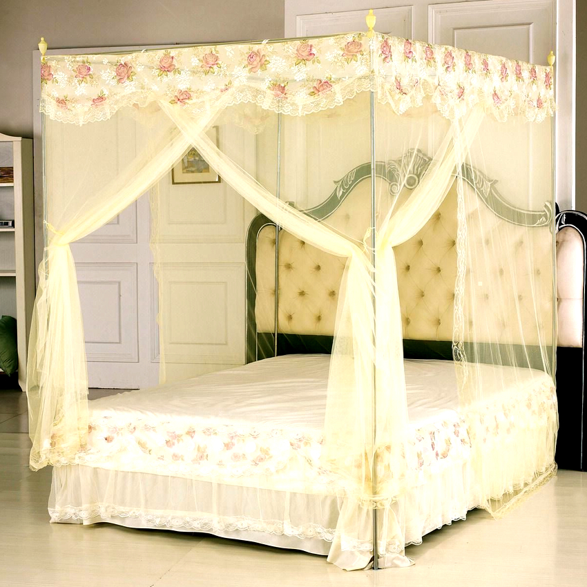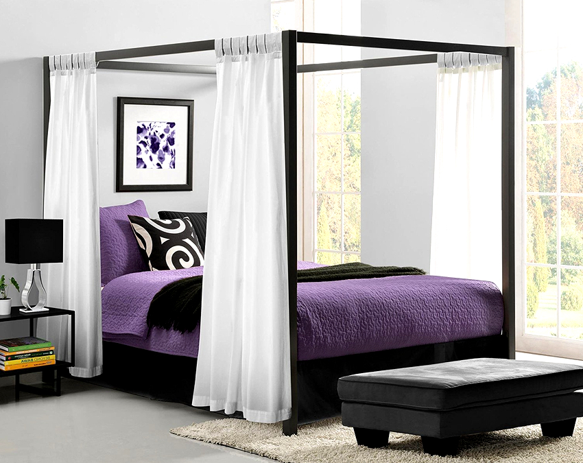 تتضمن حوامل سقف المظلة هيكل إطار. إنها مظلة يتجاوز حجم السرير وفي نفس الوقت تكرر شكلها. هذه الحوامل عالمية. إنها مناسبة للغرف الكبيرة والصغيرة.