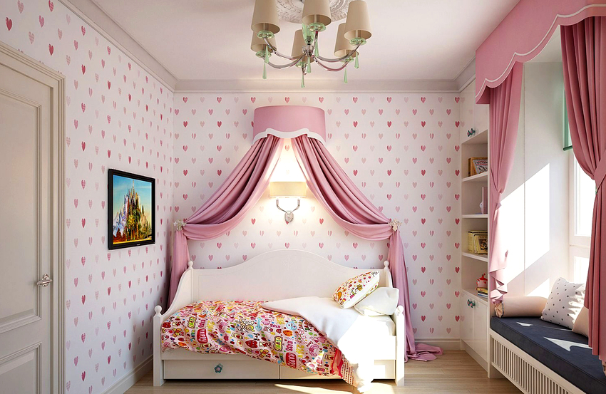 ألوان مناسبة لمظلة في غرفة الفتاة: