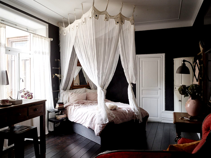 يُعتقد عمومًا أن المظلة ستبدو جميلة فقط في غرف النوم الفسيحة ذات الأسقف العالية.