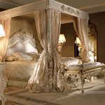 يقدم المصممون الكثير من حلول التصميم المثيرة للاهتمام لغرفة نوم البالغين. تبدو المظلة المزينة على الطراز الإيطالي جذابة للغاية في الداخل. عادة ما يتم إنشاء هذه النماذج على أساس النسيج الخفيف والخفيف. من المستحسن أن تسقط مادة المظلة بدقة على السرير. في هذه الحالة ، يجب أيضًا تزيين السرير بألوان فاتحة.