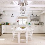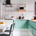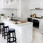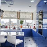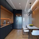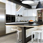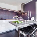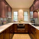 غالبًا ما يكون المطبخ الركني مع عداد القضبان عبارة عن هيكل على شكل حرف U ، وله امتداد على شكل عداد. يعد هذا الحل مثاليًا لترتيب مطبخ صغير ، ولكن في هذه الحالة لن يكون من الممكن تثبيت طاولة طعام كاملة ، سيتم استخدام الحامل نفسه كما هو.