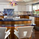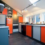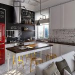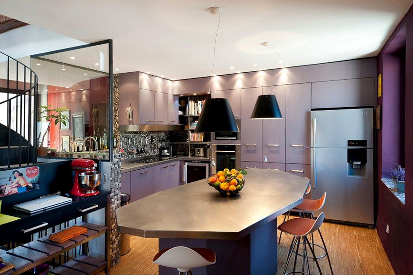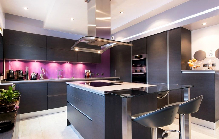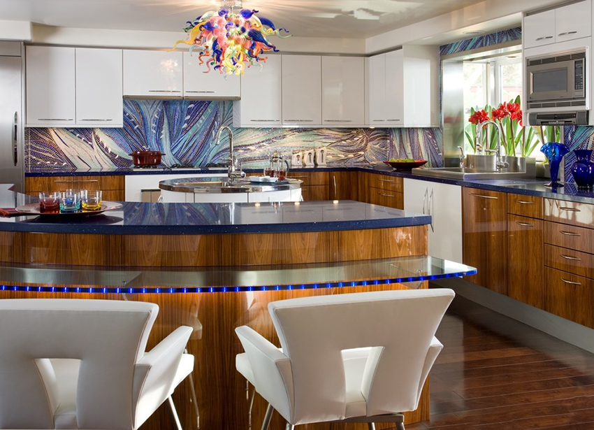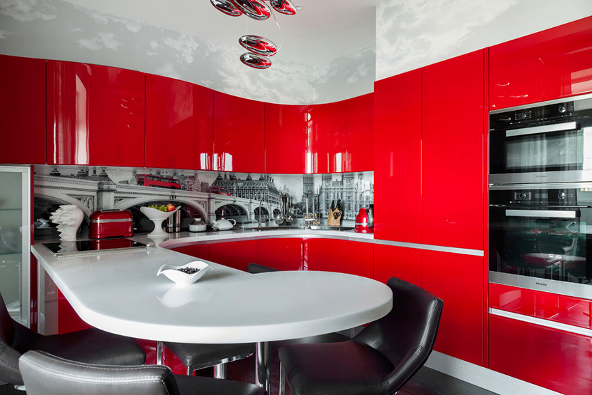 طليعة. تتميز مطابخ الزاوية في هذا الاتجاه بأشكال غير عادية وديكور غير عادي وعناصر مشرقة.