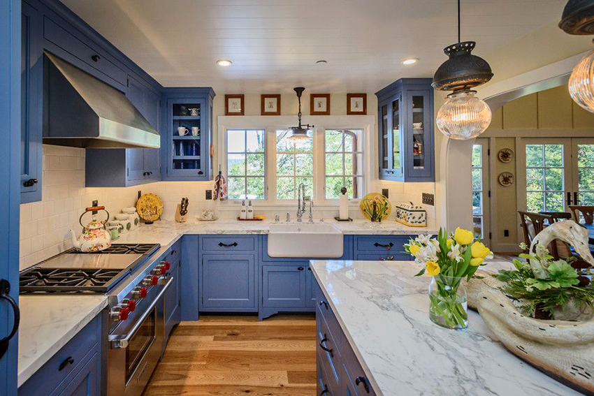 ميزات تصميم خزائن زاوية المطبخ: صور من التصاميم الجميلة