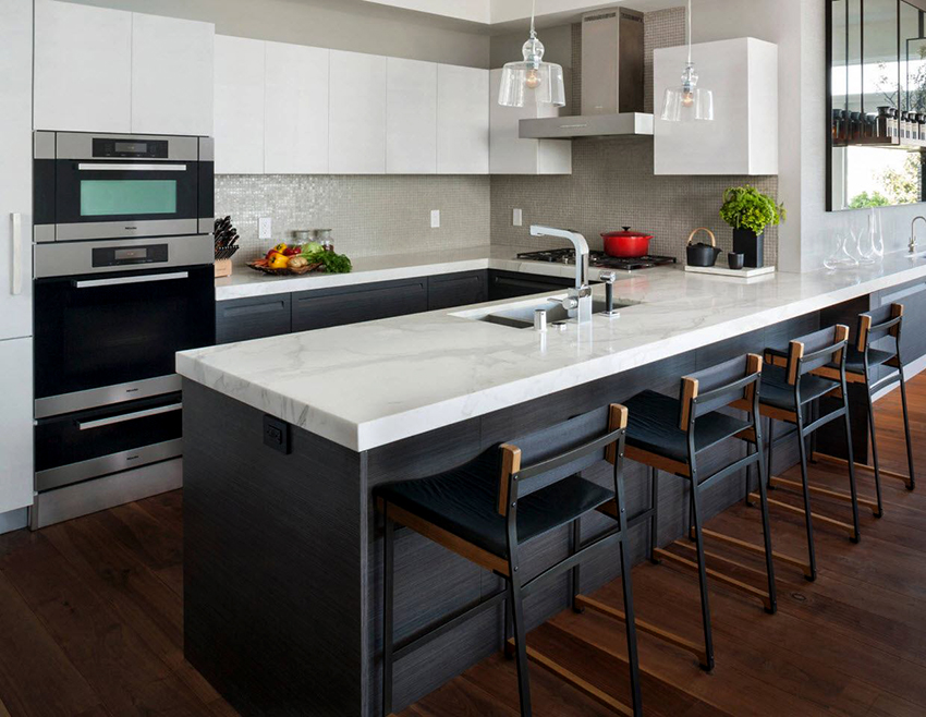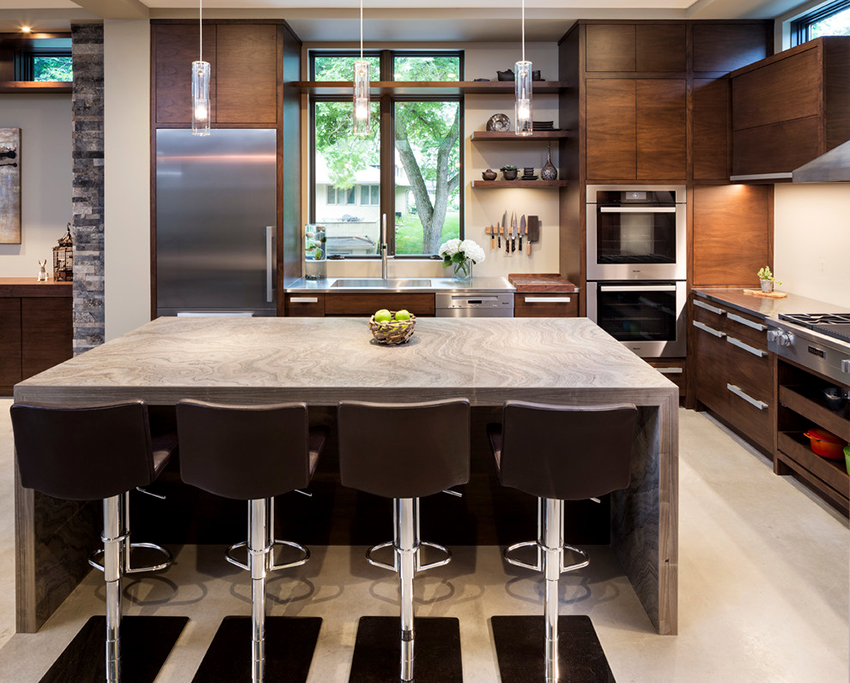 يمكن تصنيع أسطح العمل من الخشب والحجر والبلاستيك وحتى الفولاذ. في الوقت نفسه ، تعتبر المنتجات الحجرية الأكثر متانة والتي تقاوم درجة الحرارة والاحتكاك والمواد الكيميائية. العيب الوحيد هو التكلفة العالية.