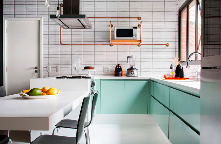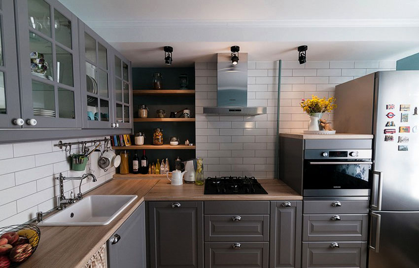 تعد سماعة الرأس على شكل حرف L الخيار الأفضل لمطبخ صغير ، ولكن فقط إذا تم استخدام مساحة الزاوية بعناية