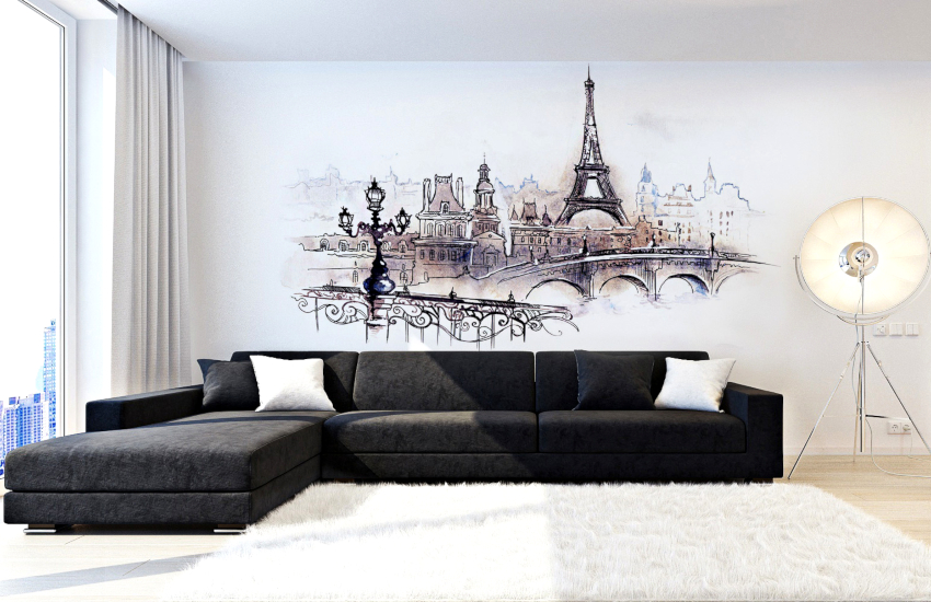 يبدو الجص الزخرفي جميلًا على الجدران في غرفة المعيشة. قاعدة خرسانية مطلية أو جدار من الطوب تتوافق مع بساطتها. هذا سيمنح الغرفة سحرًا فريدًا. أقل شيوعًا ، يتم استخدام ورق الحائط واللوحات الزخرفية في غرفة المعيشة. يجب أن تكون خفيفة وبسيطة ، بدون أنماط معقدة.