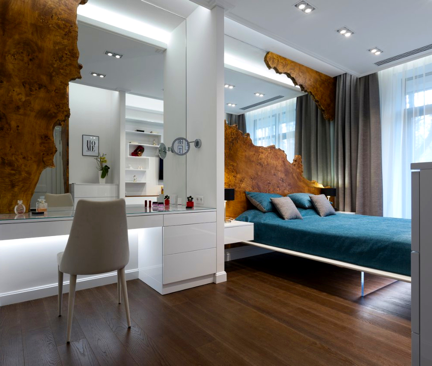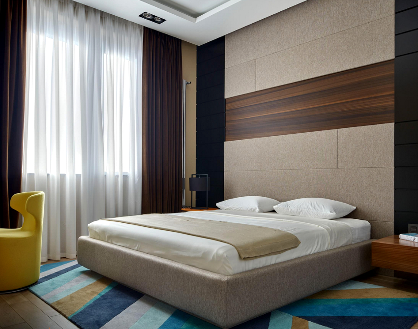 نصائح مفيدة! الحل الأصلي والعملي لغرفة النوم المصممة في اتجاه بسيط هو سرير مزدوج ، إذا تم رفعه ، يختبئ في الحائط.