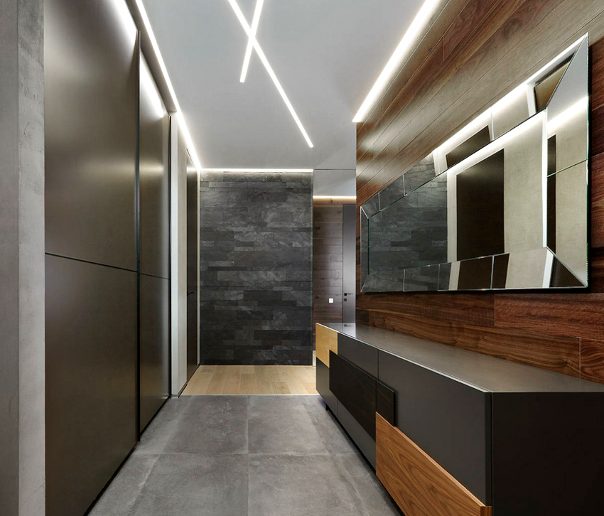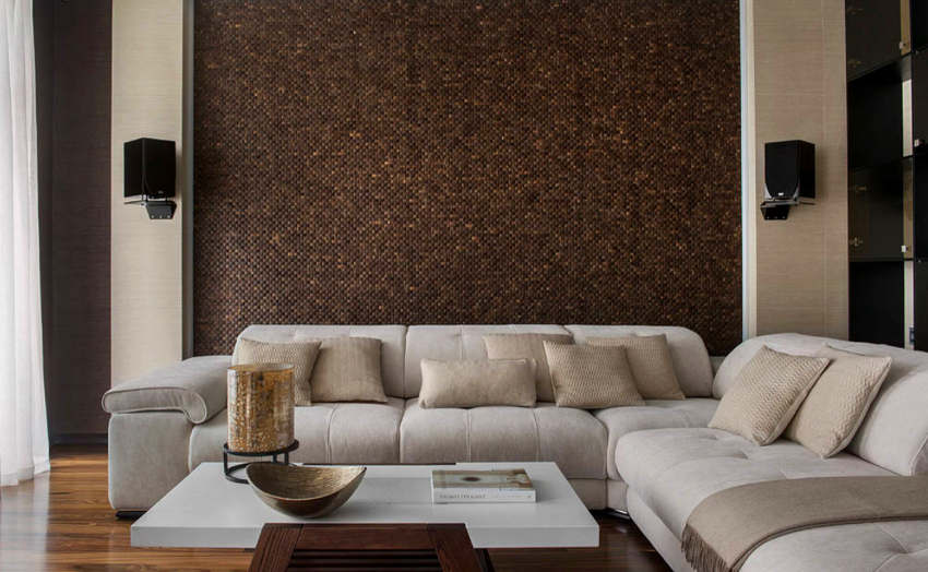 توجد مجموعة كبيرة من المواد لكسوة الجدران: الحجر الطبيعي والطوب والخشب. يسمح بالتطبيق الجزئي للزجاج والفولاذ المطلي بالكروم.