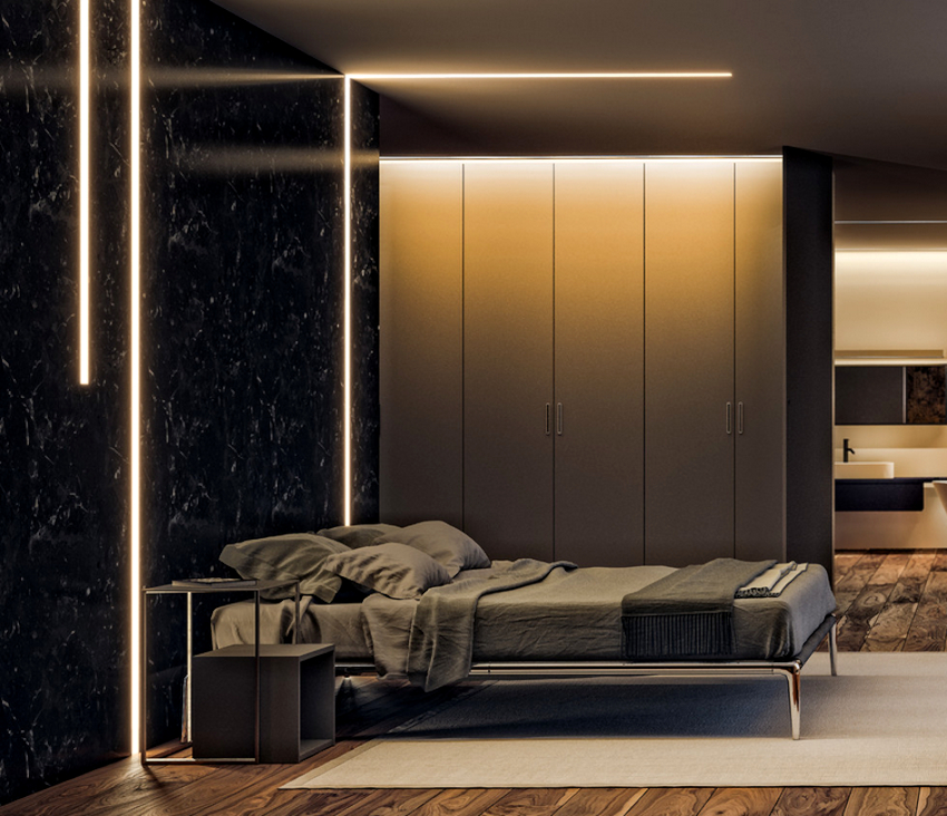 أفضل خيار للإضاءة الاصطناعية للتصاميم البسيطة هو مصادر الضوء المخفية. يمكن أن تكون هذه الأضواء أو السقوف ذات الإضاءة الخلفية متعددة المستويات. من المقبول استخدام مصابيح ومصابيح أرضية لاكونية ذات شكل هندسي بسيط.