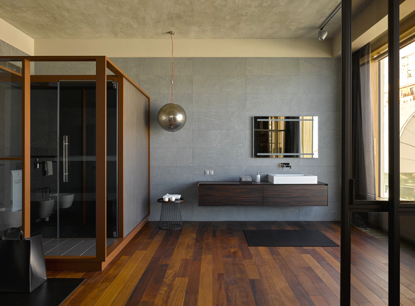 لا تثقل كاهل أرضية الحمام البسيطة بالأنماط والألوان والقوام. أفضل حل هو وضع البلاط أو صفح مقاوم للماء. تبدو البلاط ذات النمط الكبير والعديد من اللمسات المشرقة مثيرة للإعجاب ، كل منها يجد استمراره في تفاصيل أخرى من الغرفة. يستثني تصميم الحمام في هذه الحالة استخدام اللوحات والنقوش البارزة.
