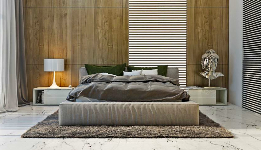 الشكل المقتضب هو السمة الرئيسية للسرير البسيط. غرفة النوم ، التي تحتوي على سرير واسع مع لوح أمامي خشبي ، تبدو جميلة وأنيقة ومريحة. هذا النموذج مفضل لدى معظم المصممين. بجانبها ، تبدو الركائز الوظيفية مفيدة ، حيث يمكن وضع مصابيح صارمة عليها.