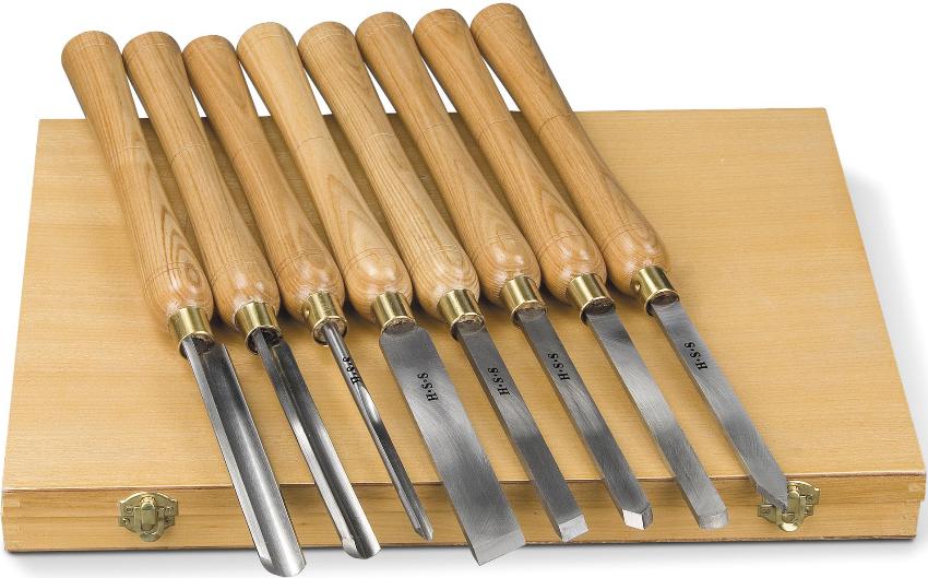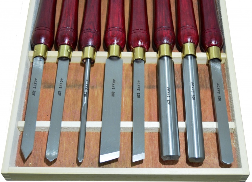 За работа на дървообработваща машина е по-добре да разполагате с всички необходими инструменти. За тази цел е по-добре да закупите не една единица, а цял набор от елементи. Един от най-популярните и търсени варианти е наборът от стругови инструменти за дърво Enkor 10430. Има осем елемента от различни профили, които са изработени от високоскоростна стомана.