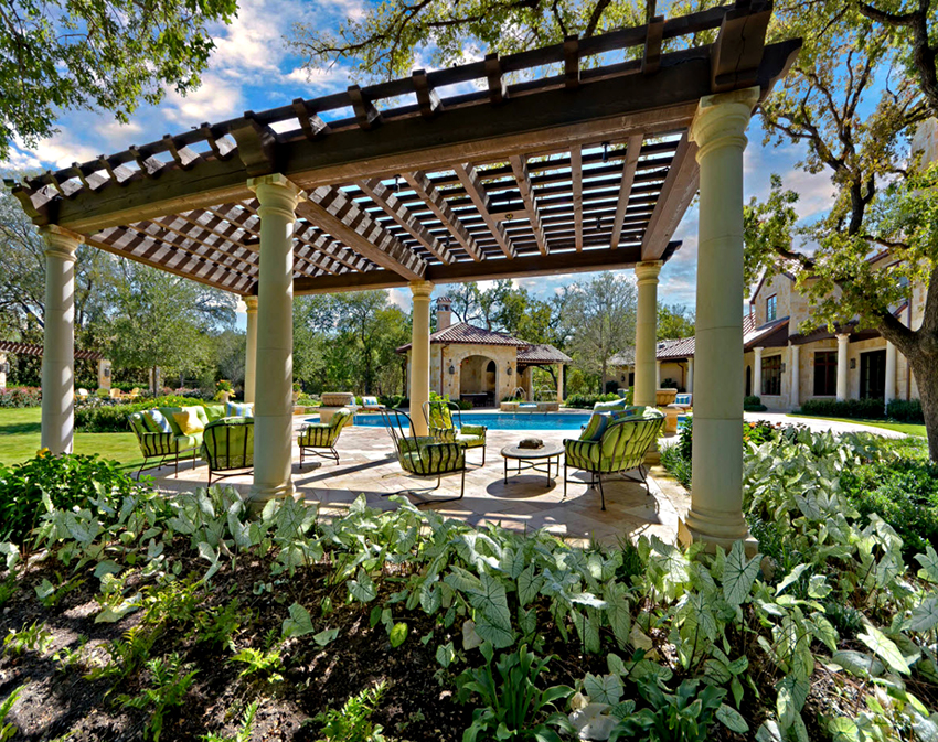 Полезен съвет! Когато оборудвате пергола като място за почивка, не трябва да я пълните с саксии, статуи, сувенири и др. Контактът с природата е характеристика на престоя в такава зона.