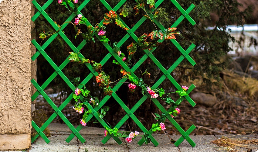 Формите на тези декоративни конструкции могат да бъдат много разнообразни: по-често правоъгълни, квадратни, триъгълни, понякога зигзагообразни, кръгли, могат да имат няколко нива. Ако целта на тази конструкция е само да създаде условия за растеж на катерещи се растения, тогава решетката е най-подходящият вид. Това е удобен вариант за едногодишни лозя. Решетъчната тъкан е изработена от недебели пръти, летви, тръби, които са прикрепени към по-трайни вертикални опори.