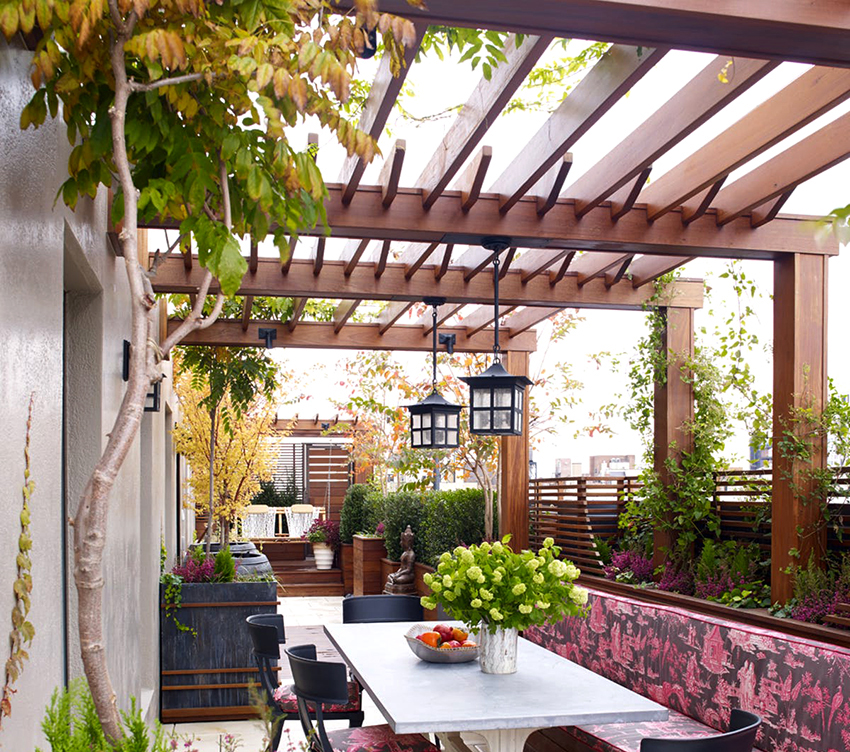 Перголи може да изпълнява функцията на ограда, както и да зонира пространството
