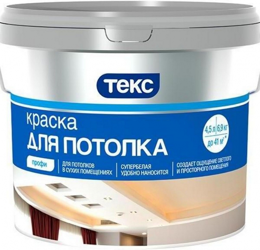 Когато избирате боя за таван, трябва внимателно да проучите предложенията на компанията Tex. Използването на този материал позволява не само да се реши проблемът как да се избели таванът с боя на водна основа без ивици, но и да се предотврати образуването на мухъл. Това се дължи на наличието на антибактериални компоненти в състава.