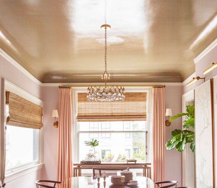 Лъскавата боя е подходяща за високи тавани, красиво показващи слънчевите лъчи и светлината от полилея