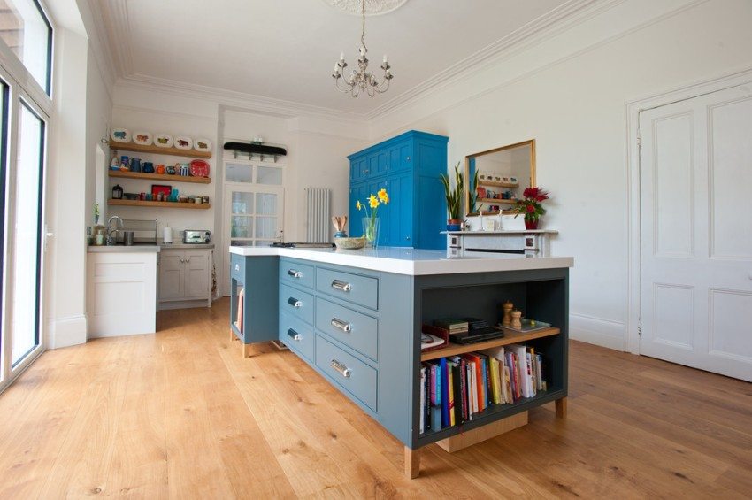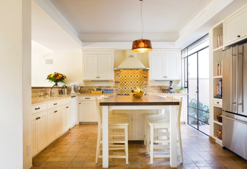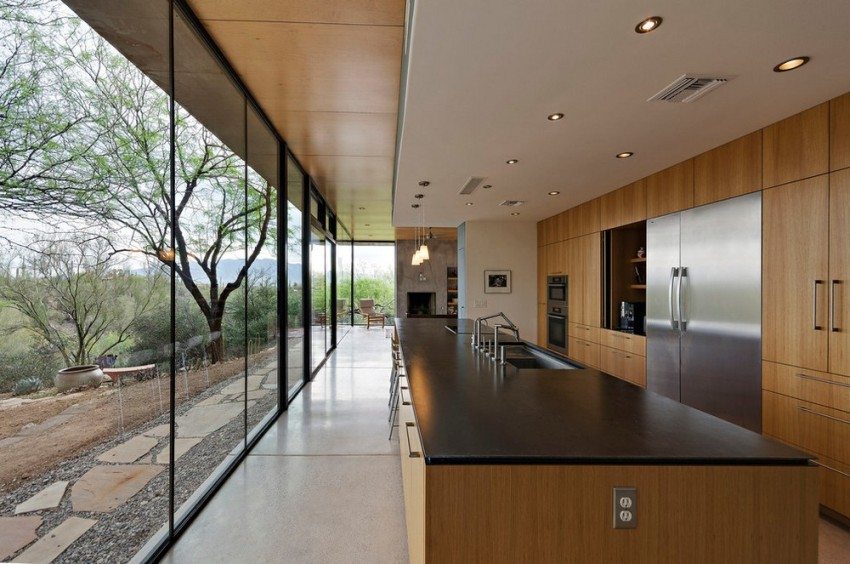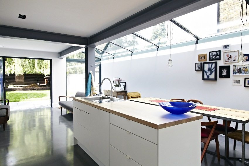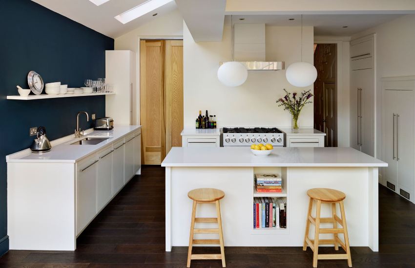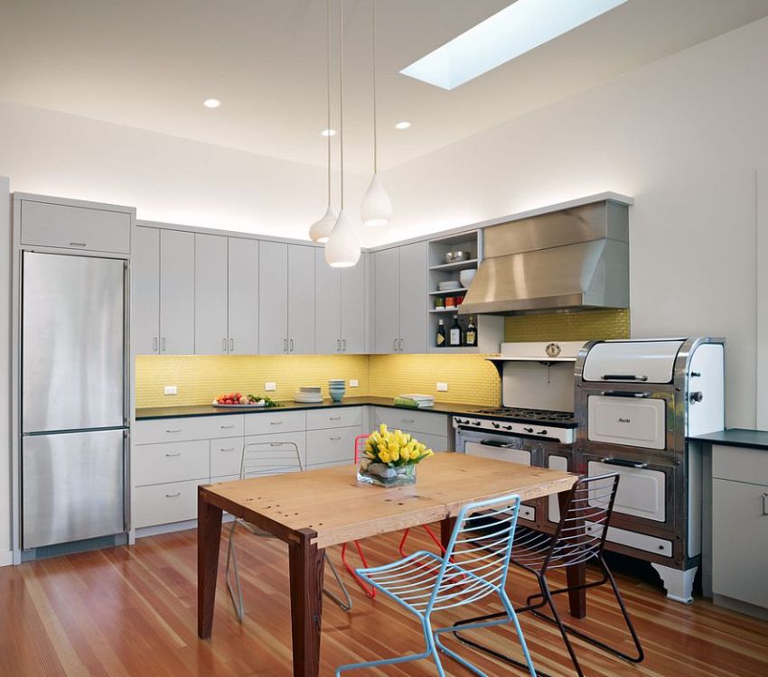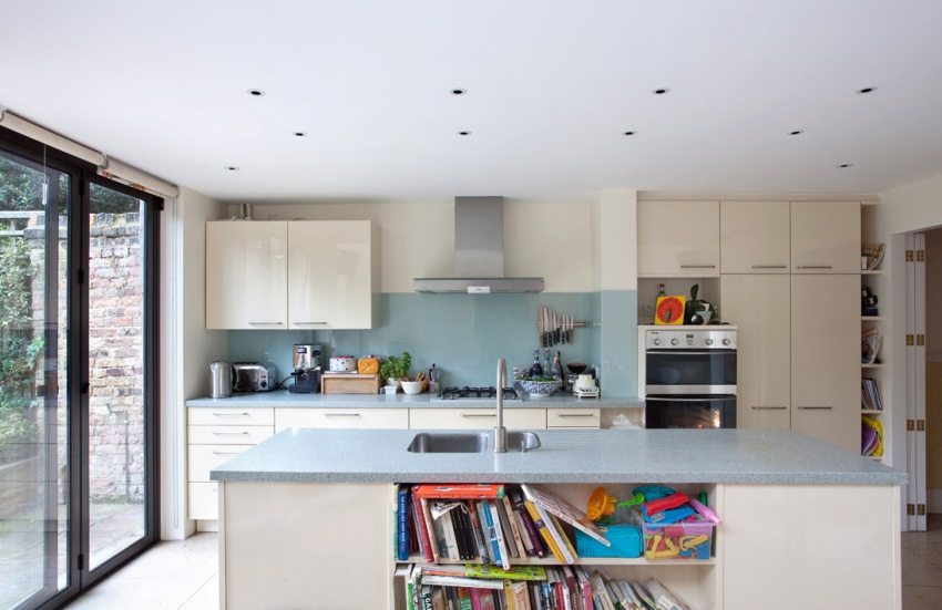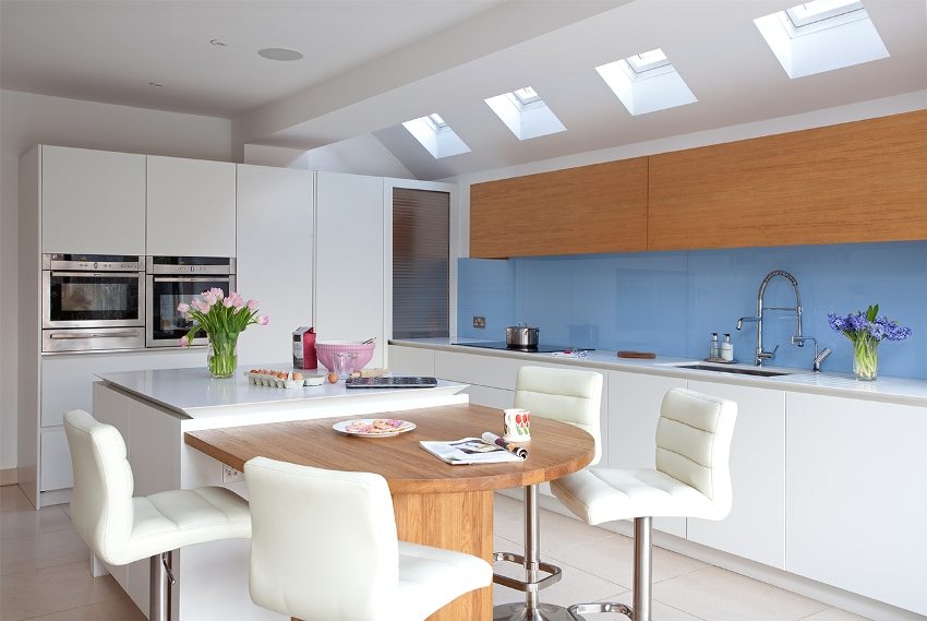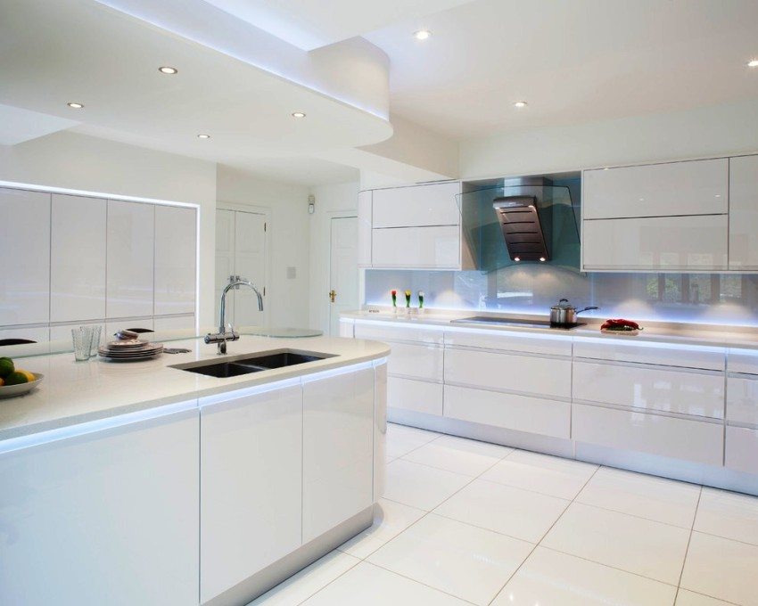 Окачените тавани позволяват използването на вградени светлини, придавайки на всяка кухня модерен вид и позволявайки пространството да бъде разделено на функционални зони.