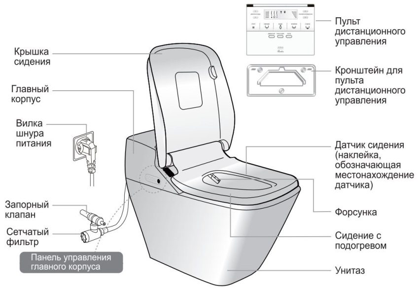 Схема за инсталиране на капак за биде върху тоалетна на пода