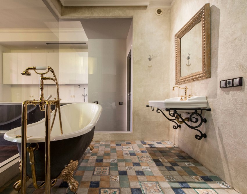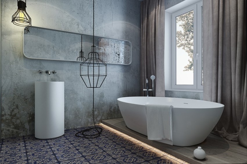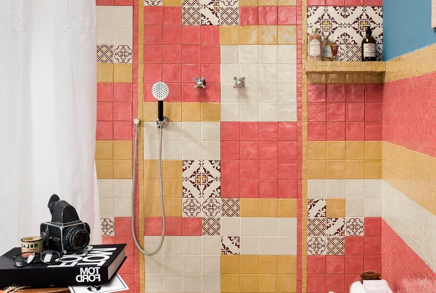 Декорация на стени с боя: довършване на снимки в интериора на банята