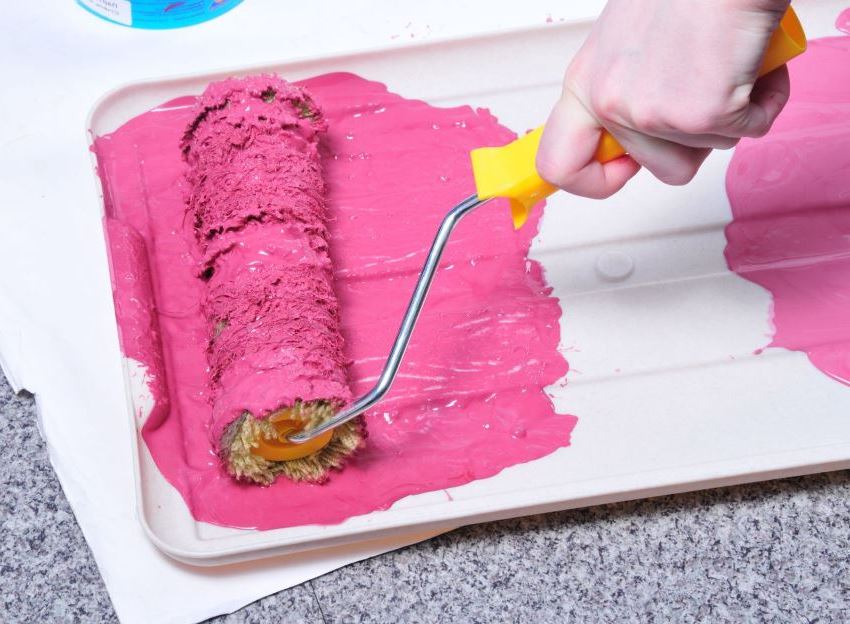 В зависимост от препоръките на производителя, багрилото се нанася върху повърхността на 2-3 слоя. На първо място, трябва да се справите с ъгли и труднодостъпни места. Стената е боядисана изцяло, само след това можете да преминете към следващата. За нанасяне можете да използвате четка, валяк за боядисване, пистолет за пръскане.
