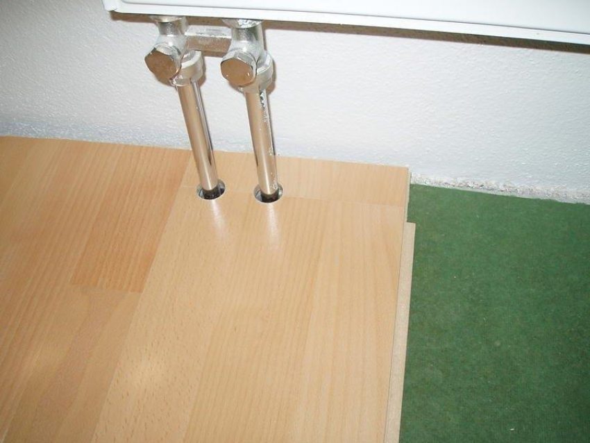 La col·locació de sòls laminats en llocs on passin canonades, radiadors de calefacció, al voltant de les portes i en altres llocs de difícil accés no presenta cap dificultat particular. Les canonades s’eviten de la següent manera: fan marques a la pissarra amb un llapis i hi tallen els forats corresponents, sense oblidar de tenir en compte la bretxa de temperatura entre el recobriment i la canonada (8-10 mm).