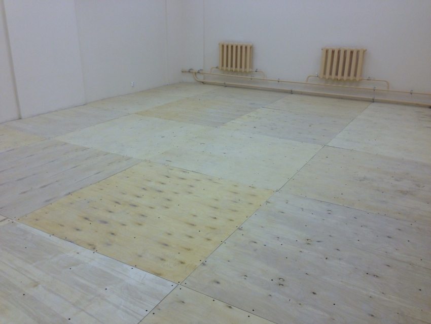 Abans de començar la instal·lació, és útil comprovar el nivell d’humitat a l’habitació. Per fer-ho, col·loqueu a terra una làmina de polietilè d’aproximadament 1x1 m que s’ha de prémer fermament al terra i deixar-la durant tres dies. Si després d’aquest temps no es forma condensació a l’interior del full, es poden utilitzar fulls de fusta contraxapada en aquesta habitació.