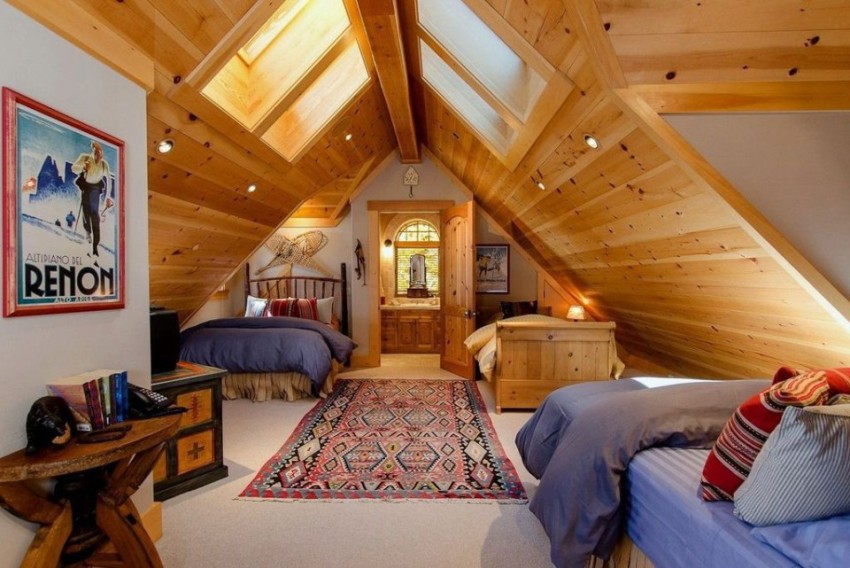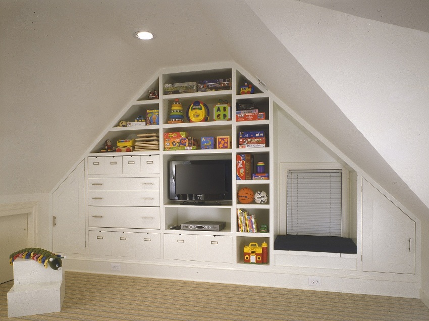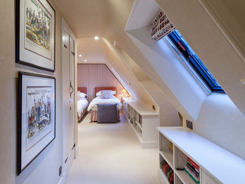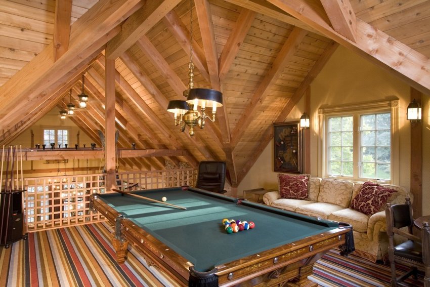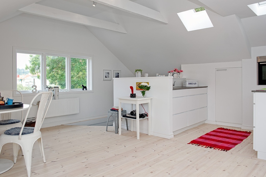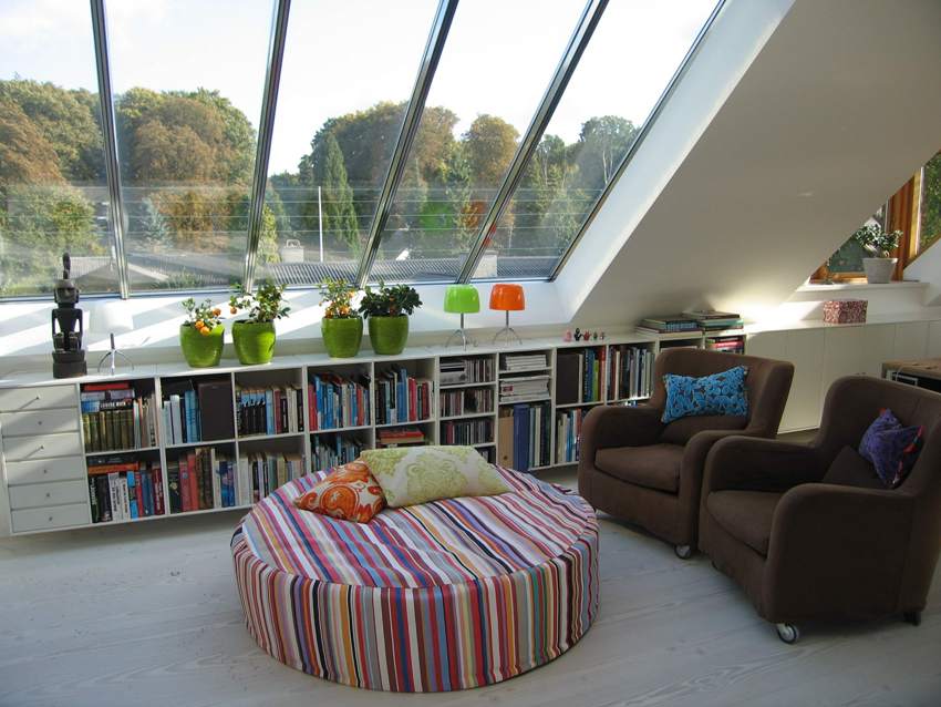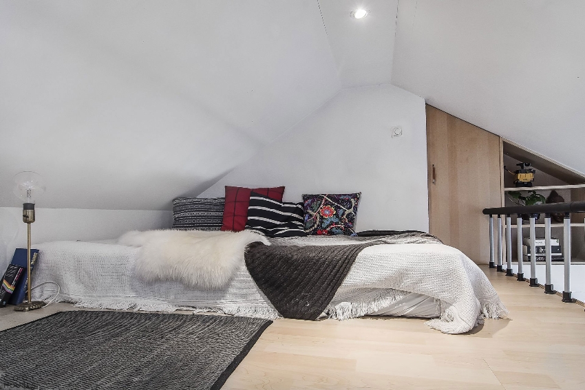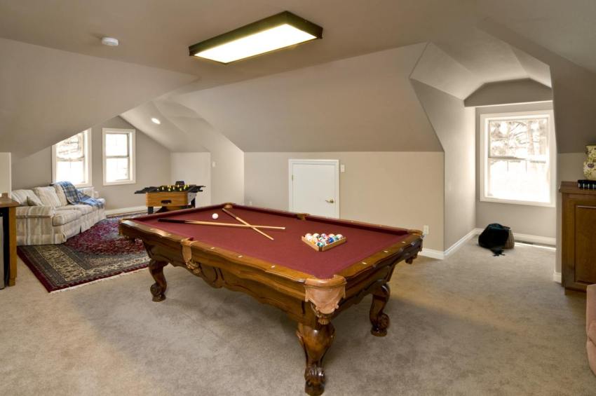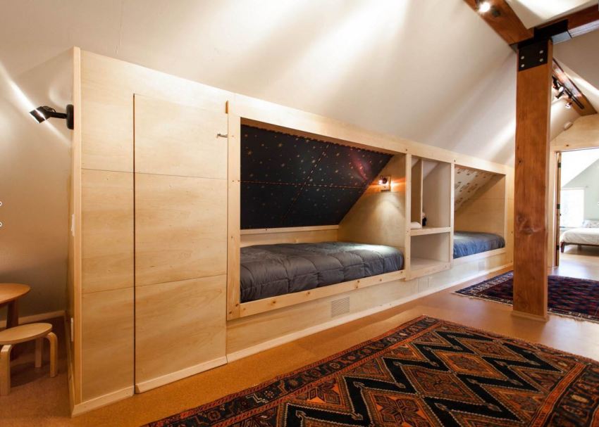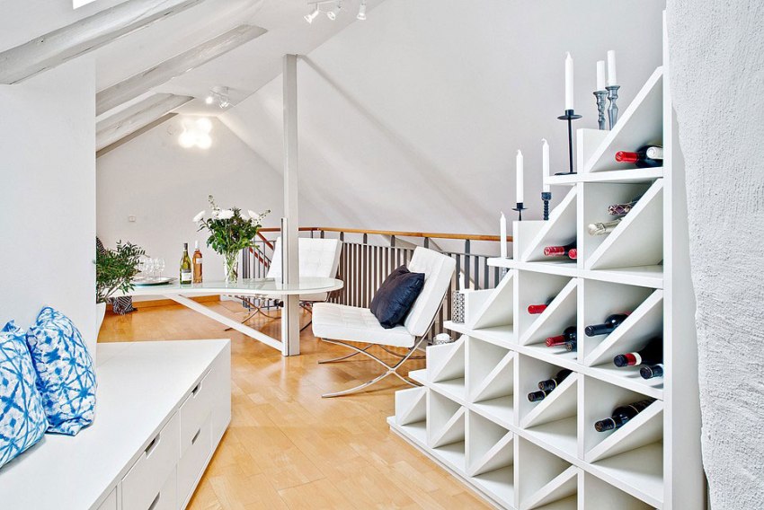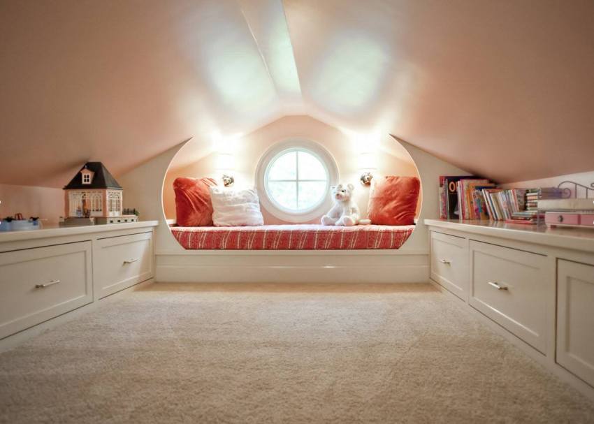 Si l’espai sota el sostre és força gran, l’habitació es pot dividir en diverses àrees funcionals. L’avantatge de la millora de les golfes és l’adquisició de metres quadrats addicionals a un cost mínim.