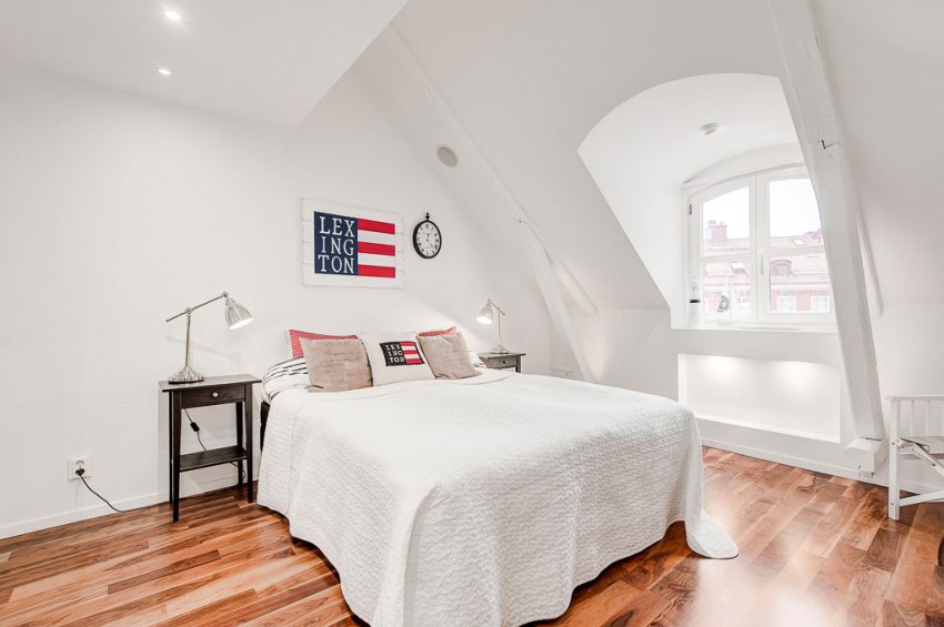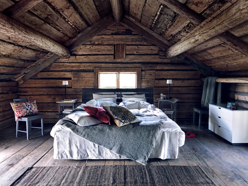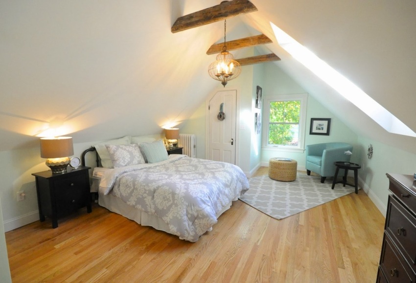 Disseny de dormitori a les golfes es pot decorar en qualsevol estil. L’estil escandinau, el país o la Provença es veuran més avantatjosos. En triar un d’aquests estils, no cal amagar elements constructius com bigues o bigues. Seran una bona addició al disseny del dormitori de les golfes.