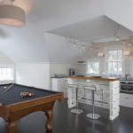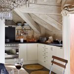 Si la superfície i l’alçada de l’habitació sota el terrat ho permeten, aquí podeu organitzar una cuina i un menjador. Aquest disseny interior de les golfes tindrà un aspecte original, inusual i bell. L’únic inconvenient d’aquesta cuina és la complexitat de la línia de comunicació. La forma més senzilla d’implementar aquesta idea és en la fase de construcció d’una casa. En aquest cas, és molt més fàcil portar les comunicacions necessàries per a la cuina.