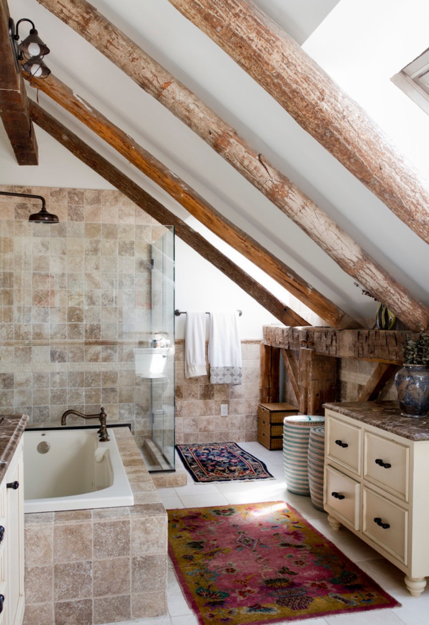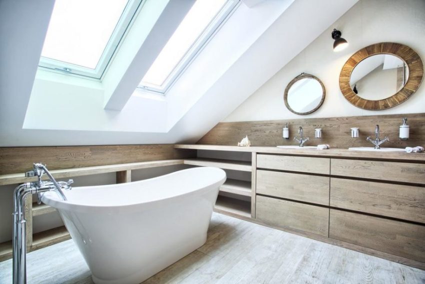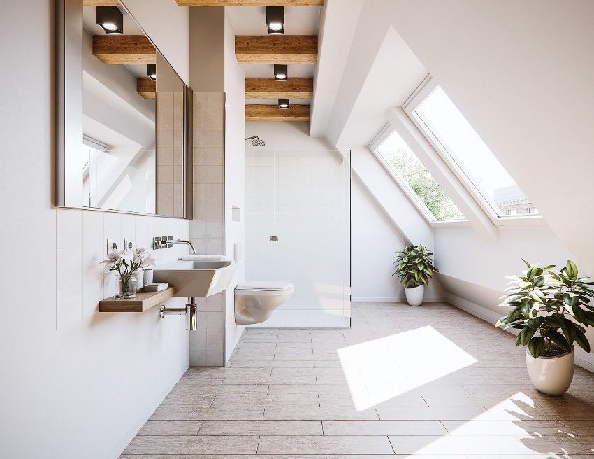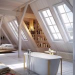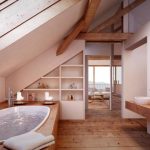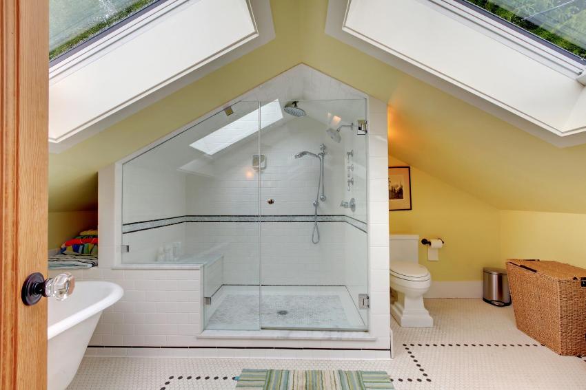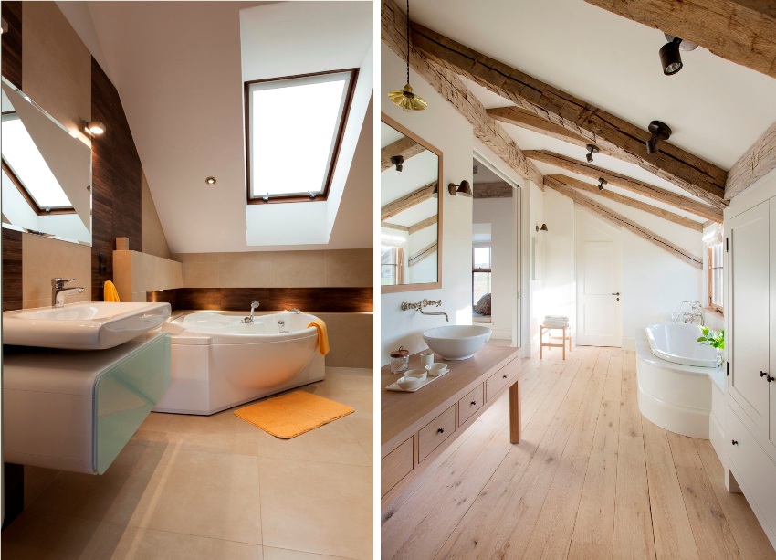 A les cases particulars, les golfes poques vegades s’utilitzen amb finalitats funcionals, per exemple, com a bany, però en un apartament de les golfes de la ciutat això és molt possible. A l’hora de desenvolupar un projecte, cal tenir en compte la mida de l’habitació, l’alçada dels propietaris i els patrons ergonòmics. El resultat és un bany còmode i pràctic. El lavabo i la banyera s’instal·len més sovint a prop d’una paret inclinada. Si l'habitació no és molt gran, és millor posar una dutxa.