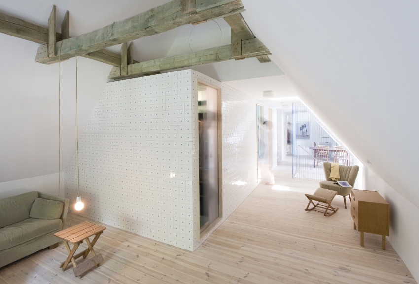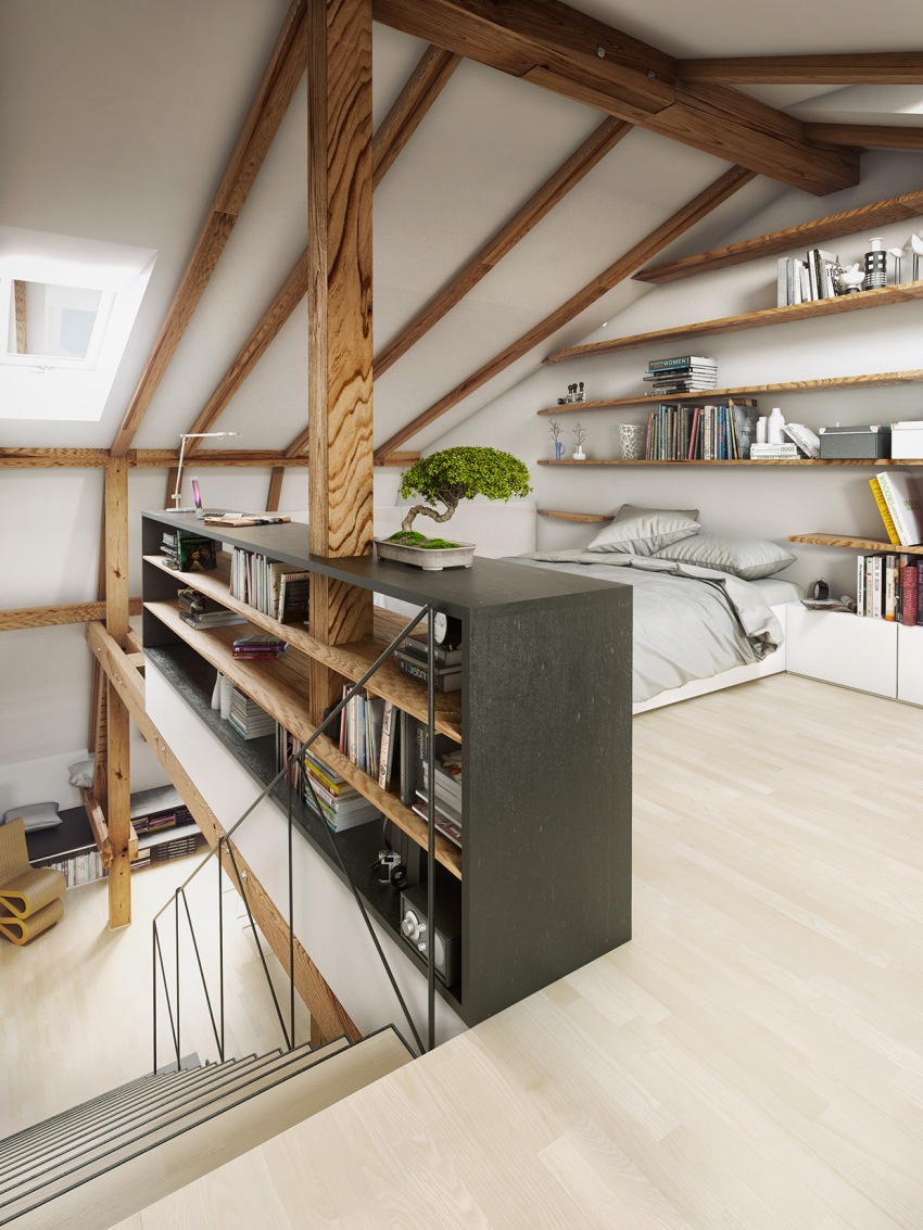 - utilitzar amb competència tots els elements de les golfes en el disseny: parets obliqües, puntals, bastidors, bigues i pendents del sostre;