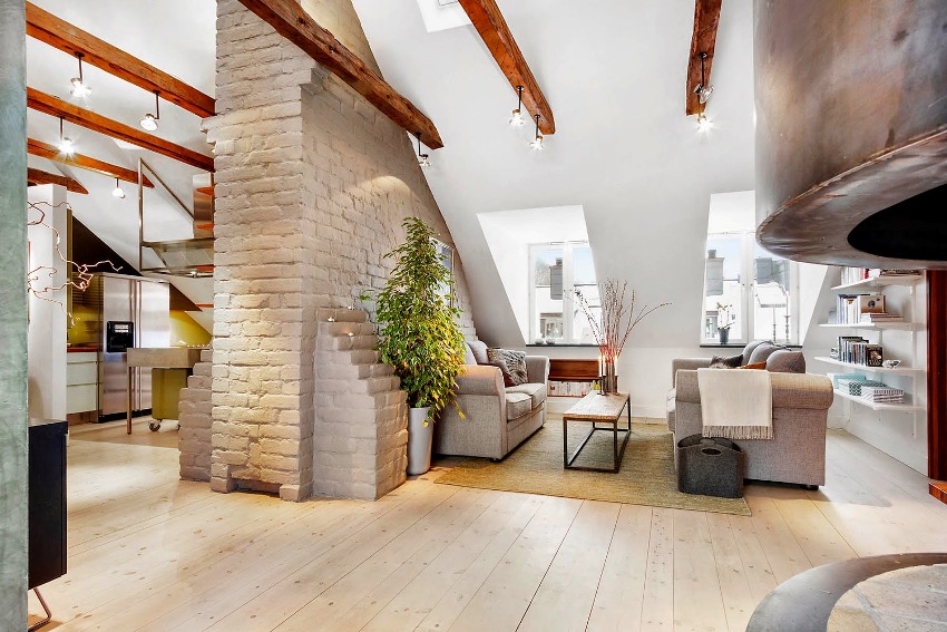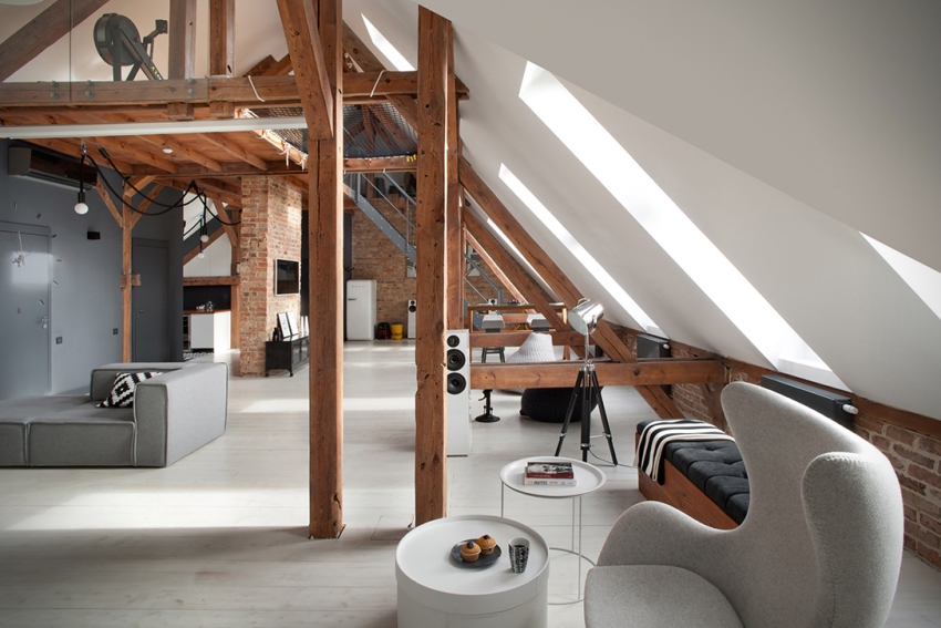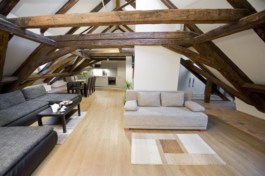 Interior de les golfes: fotos i les principals etapes de la transformació d’un àtic en una sala d’estar