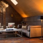 És millor utilitzar diverses fonts com a il·luminació artificial: llums, làmpades de peu, aplics, llums d’aranya, làmpades de taula. L’organització de la il·luminació artificial requereix un enfocament acurat, ja que no només ha de ser funcional, sinó també bonic. Les làmpades de nit combinades amb un petit aranya principal al centre de l’habitació són bones per il·luminar les golfes. Els focus són ideals per a la sala de les golfes. El millor és col·locar-los als racons de l’habitació.