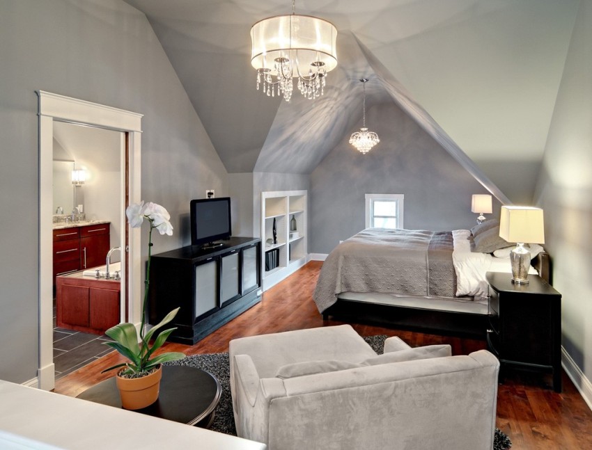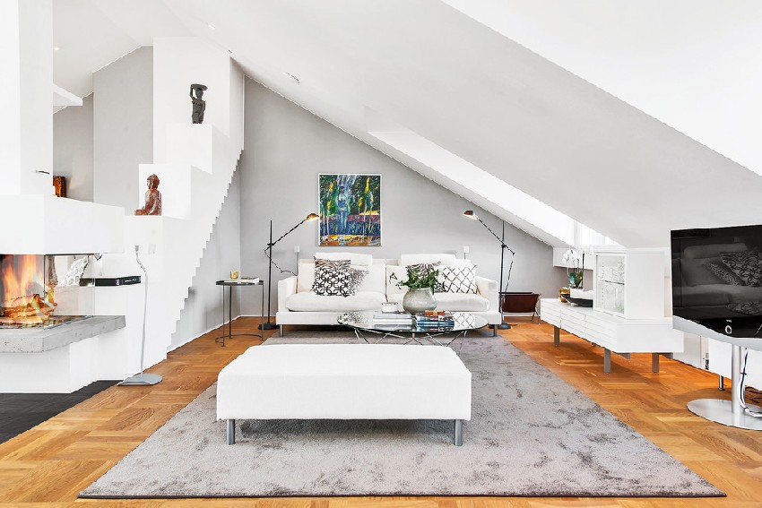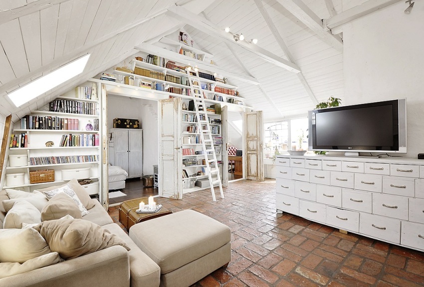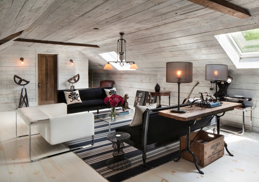 Disseny de golfes amb sostre a dues aigües: fotos de salons elegants