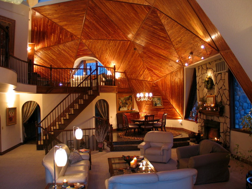 Per descomptat, el disseny de la casa amb cúpula serà una mica diferent del que estem acostumats. Tot i això, això no vol dir en absolut que la forma inusual de l'edifici imposi restriccions o prohibicions als propietaris. Per contra, gràcies a la forma inusual de les parets, podeu crear els interiors més inusuals i originals.