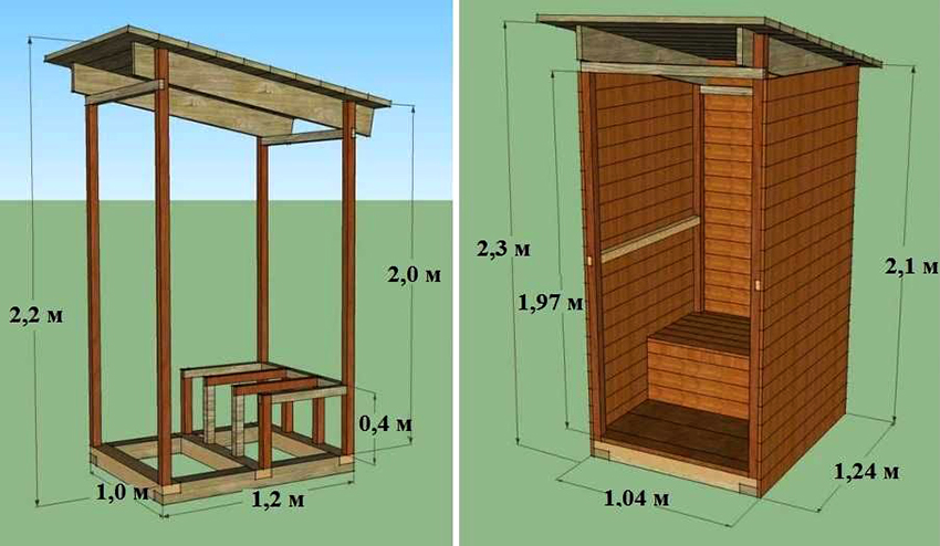 La manera més senzilla és construir un estand tradicional de fusta que, si cal, serà fàcil de reinstal·lar en un lloc nou. Com a materials principals s’utilitzen taulers, taulers, fulls de fusta aglomerada o contraxapat. La forma més ràpida és fer un vàter amb taules de fusta. Quan es construeix un vàter convencional d’una sola vessant, s’han de tenir en compte els paràmetres següents: