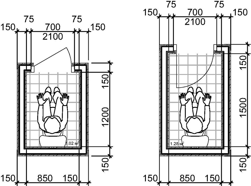 - Quan es planeja un vàter que tingui una forma triangular de cabana o cabana, la profunditat s’ha de pensar al nivell d’1,5 m i l’amplada ha de ser d’almenys 1 m. Per fer-ho convenient estar al vàter, s’ha de deixar més de 40 cm d’espai des del cap fins a les parets inclinades en posició de peu. ...