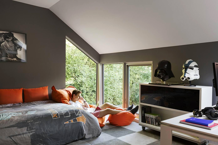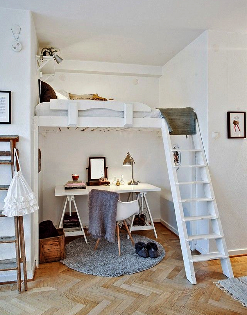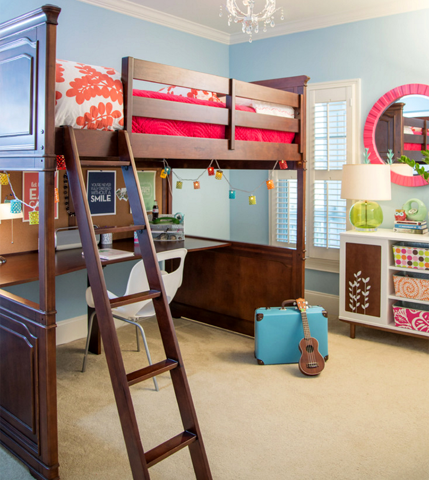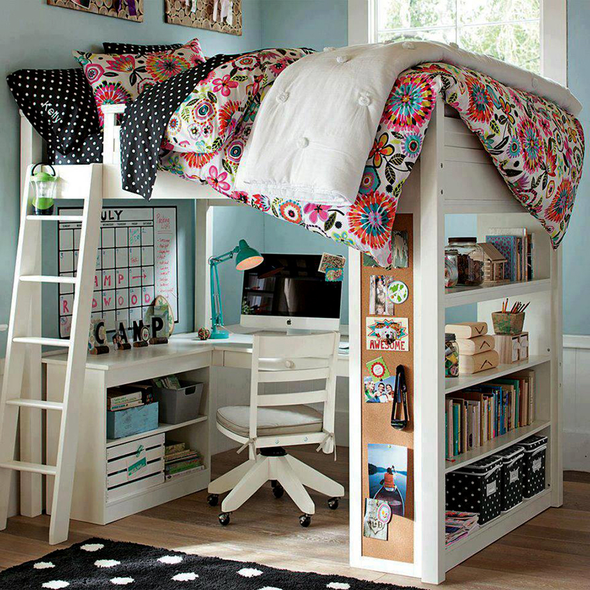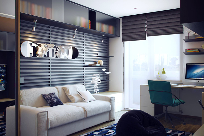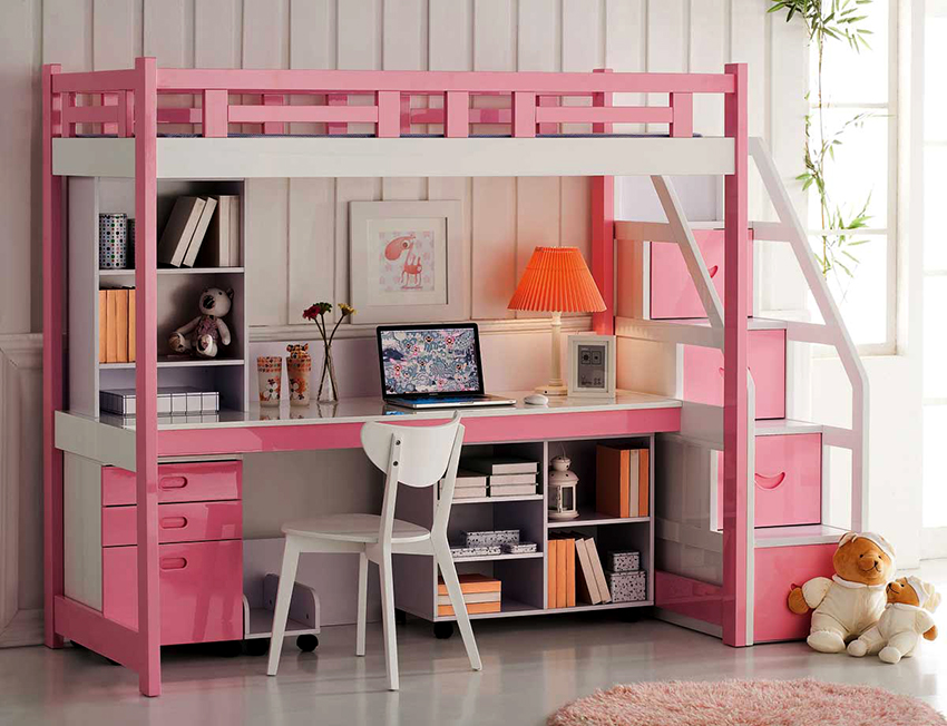 Podkrovní postele pro teenagery se liší od modelů pro mladší děti. Ve spodní části konstrukce může být pracovní plocha v podobě počítačového stolu, prostorné skříně nebo sportovního simulátoru. Různé verze produktu lze vidět na fotografii palandy pro teenagery.