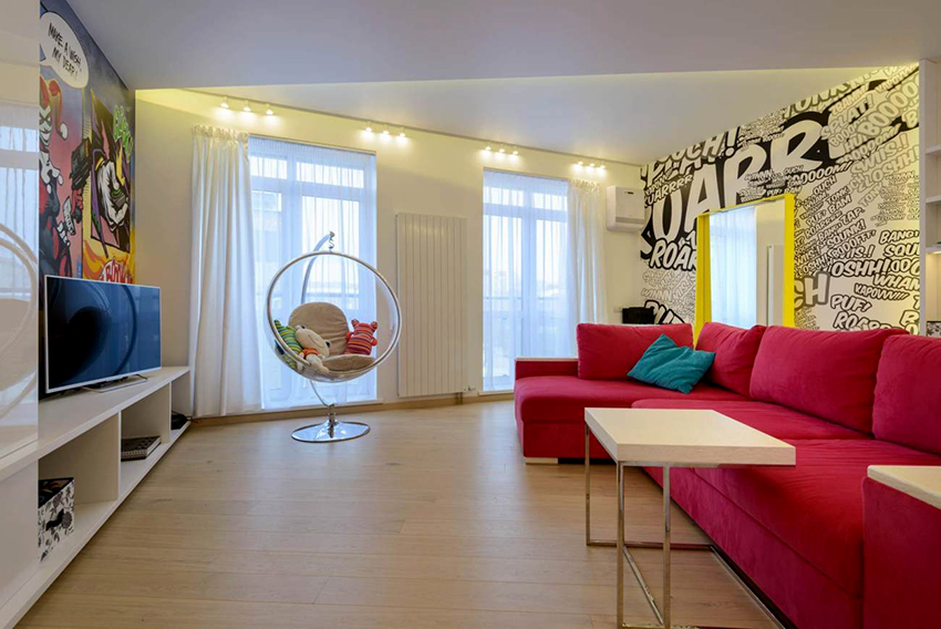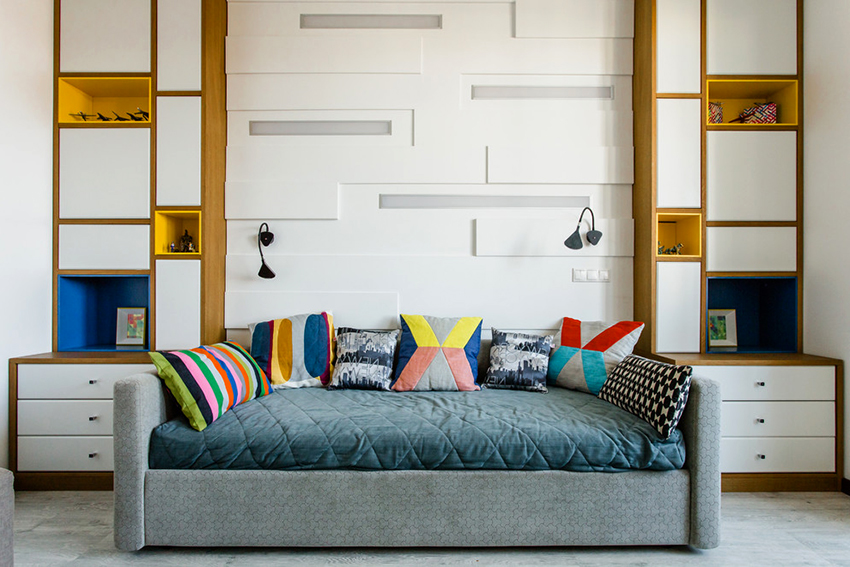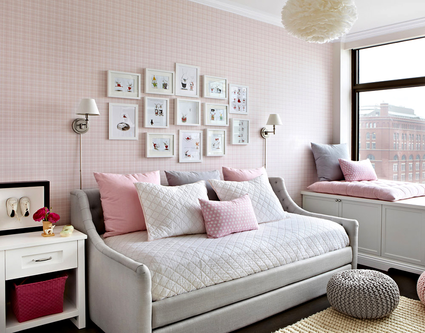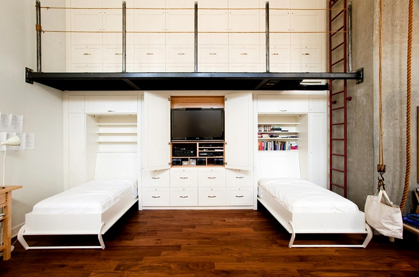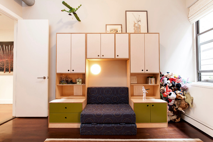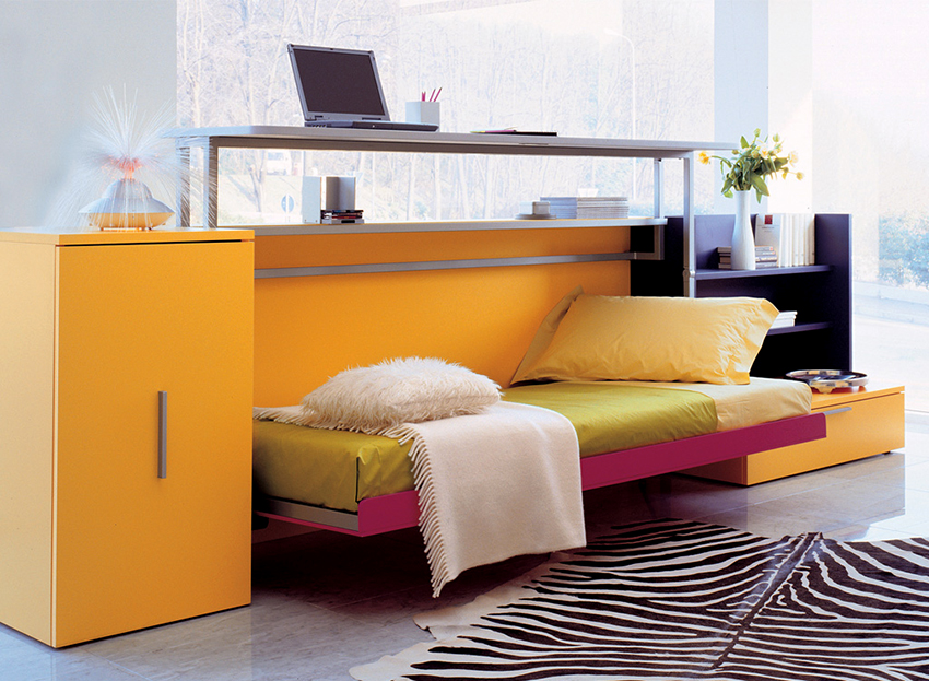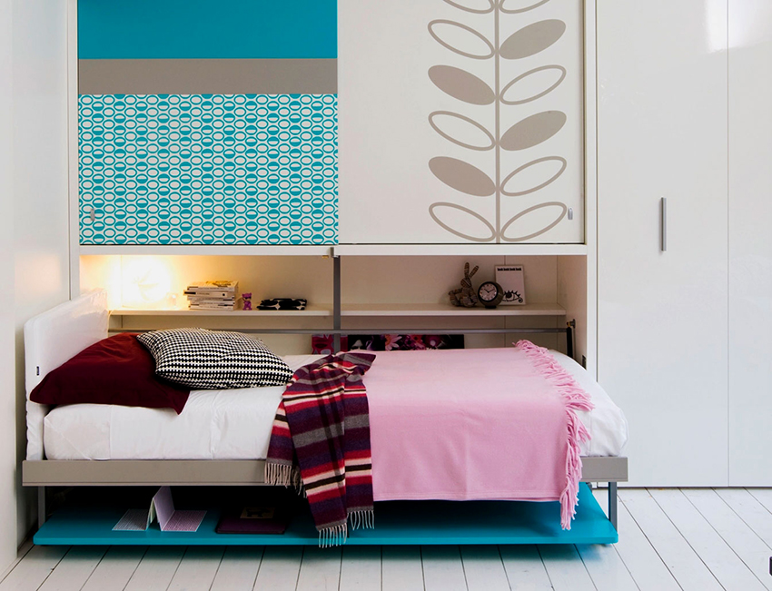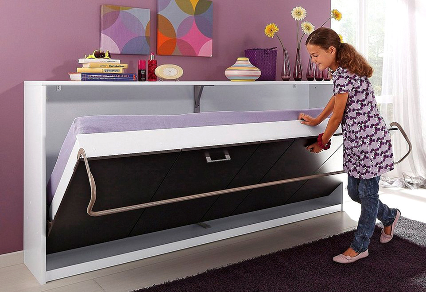 Pohovky se také liší v možnosti transformace. Nejpopulárnějším modelem je „Eurobook“, který je instalován poblíž jedné ze stěn místnosti. Je snadno ovladatelný a má přijatelné náklady. Nika pro uložení prádla je obvykle umístěna pod lůžkem.